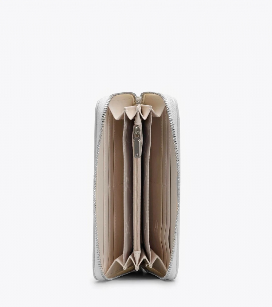 Εσωτερικά περιέχει πολλαπλές θήκες για κάρτες και χαρτονομίσματα και κεντρική θήκη με φερμουάρ.