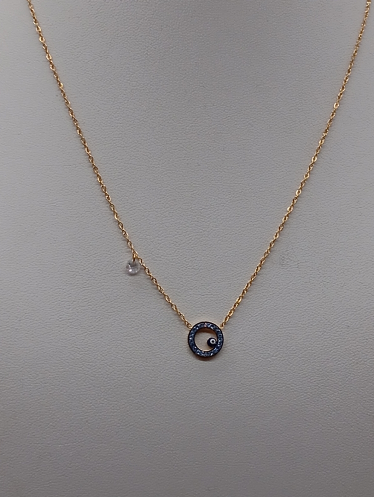 Κολιέ ατσάλινο Ματάκι με μπλε στρασάκια 7272 Gold