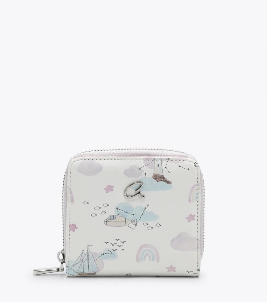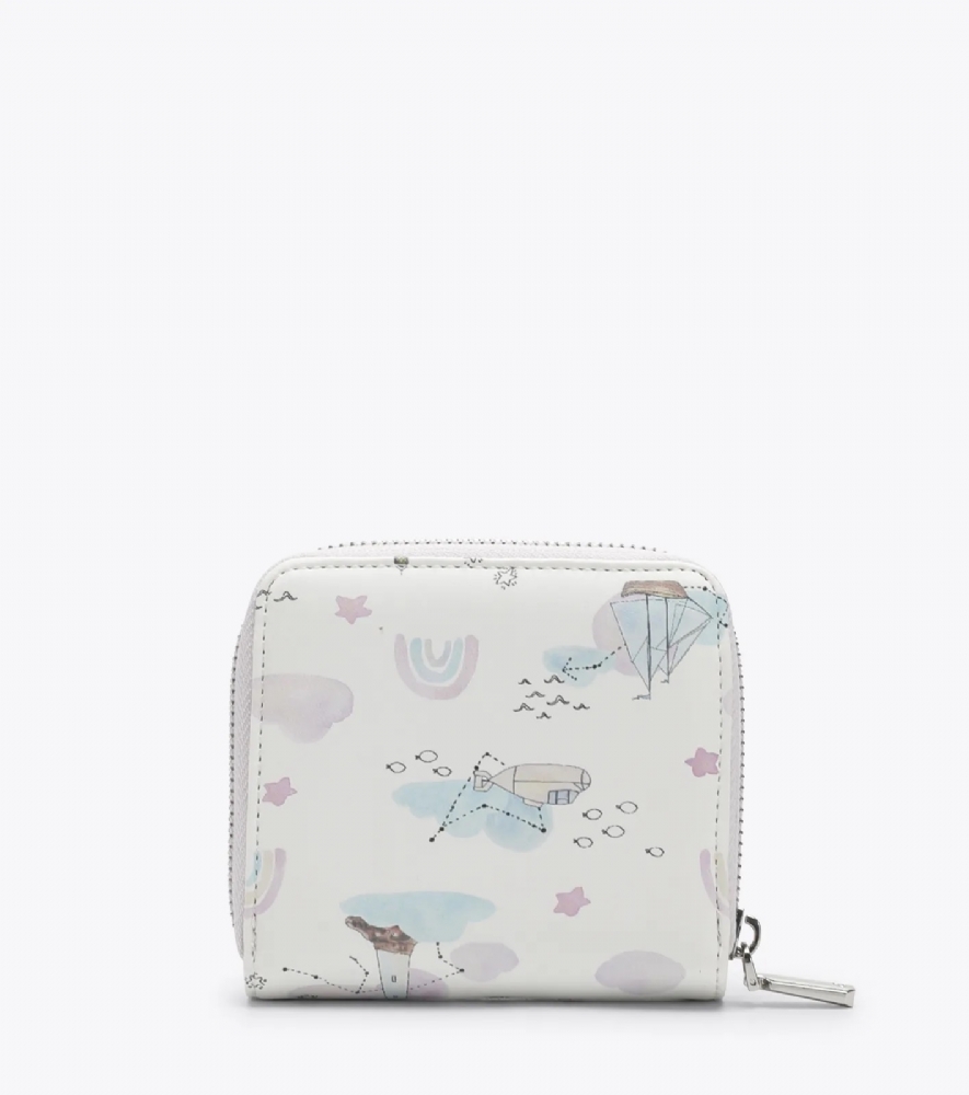 Ένα πορτοφολάκι που χωράει εύκολα και σε μικρές τσάντες με όμορφο τύπωμα ουράνιο τόξο απαλές ροζ αποχρώσεις.