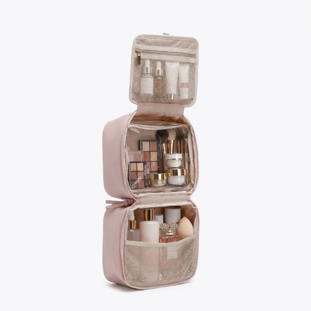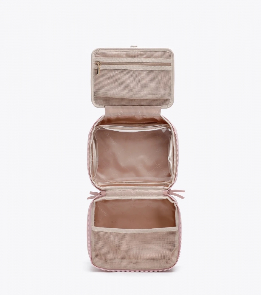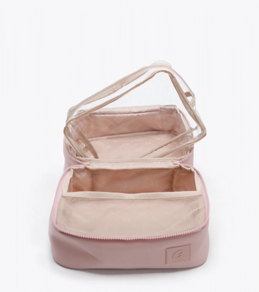 Γυναικείο νεσεσέρ ταξιδιού με διπλό φερμουάρ σε ροζ απόχρωση.