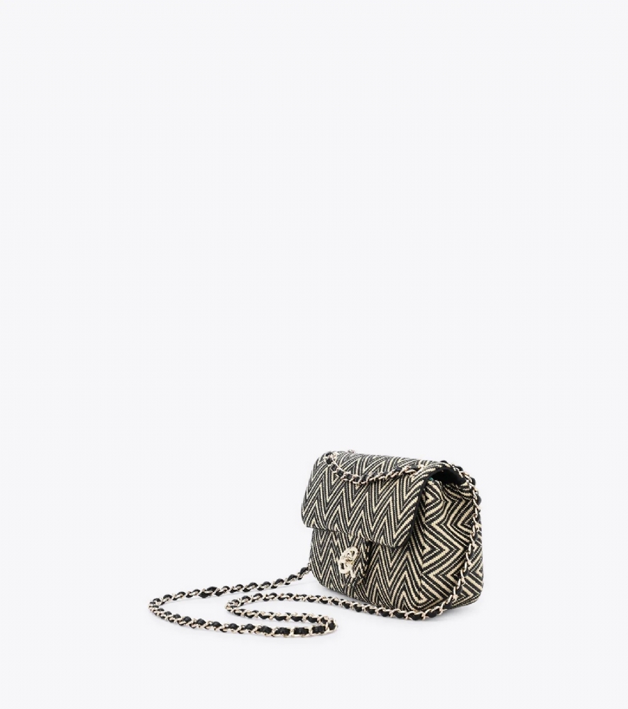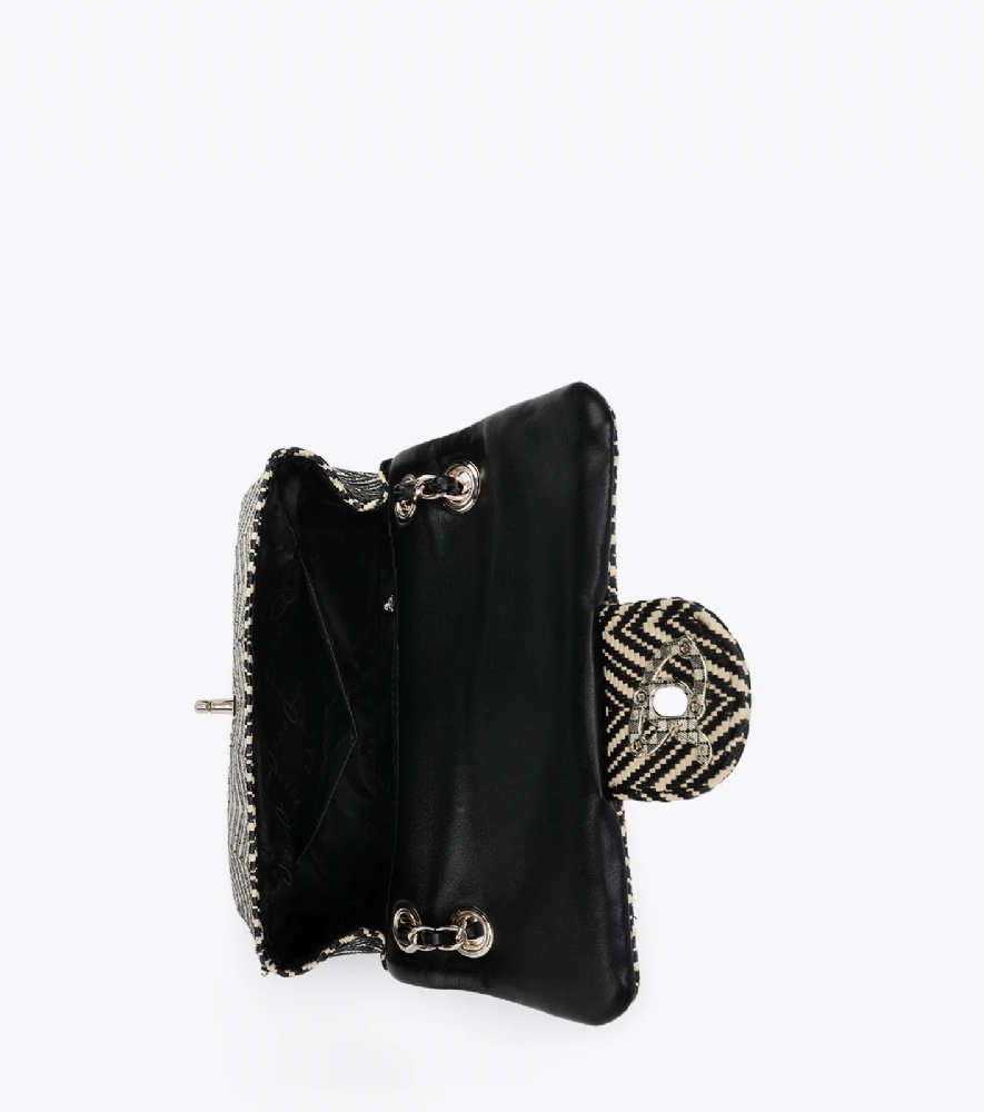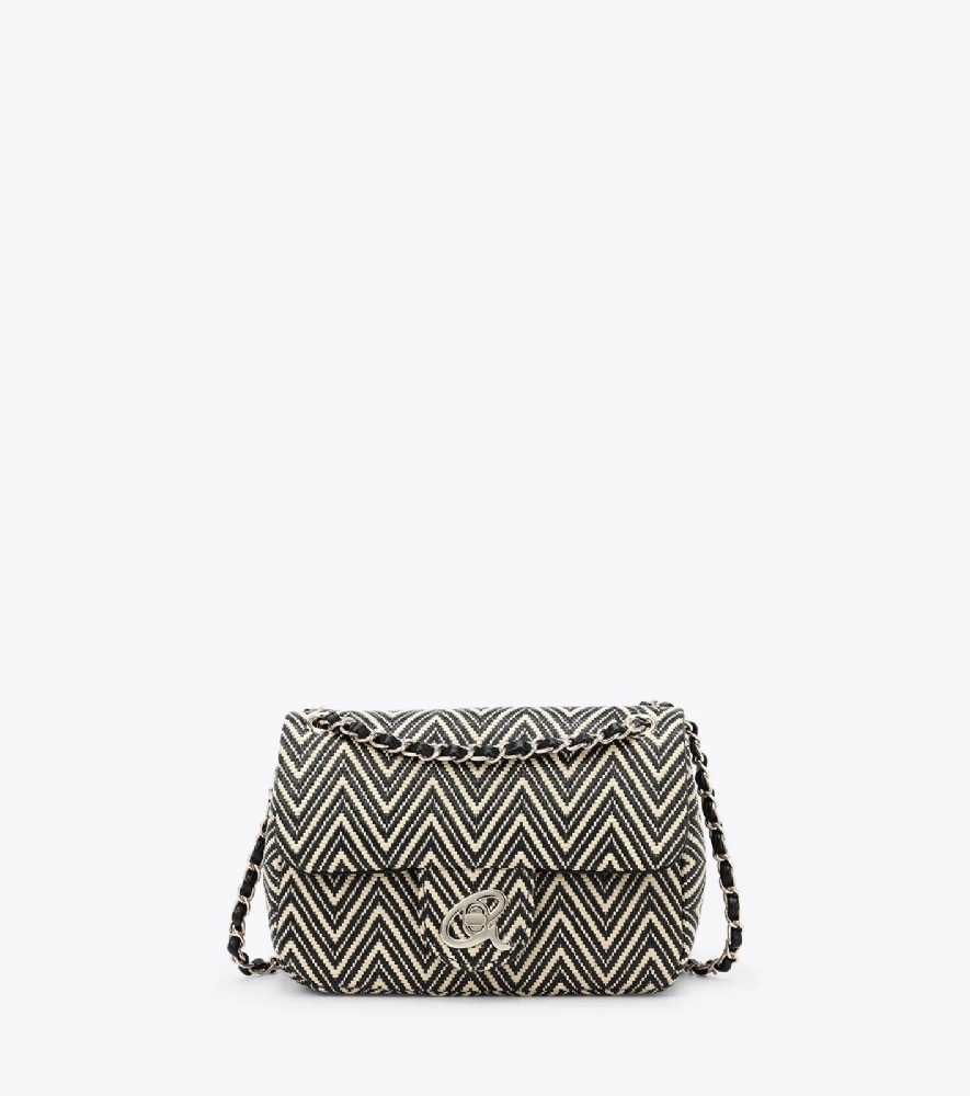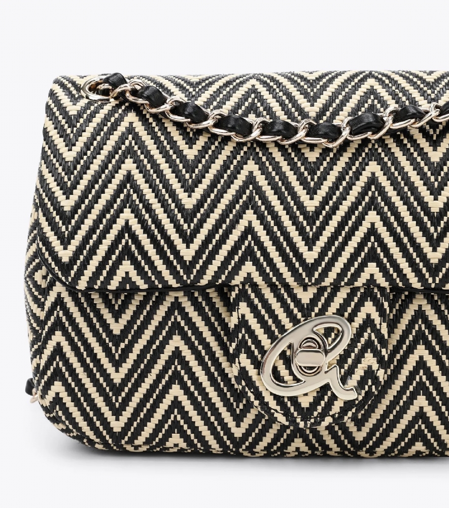 Γυναικεία ψάθινη τσάντα χιαστί με έθνικ τύπωμα σε συνδυασμό από τεχνόδερμα υψηλής ποιότητας.