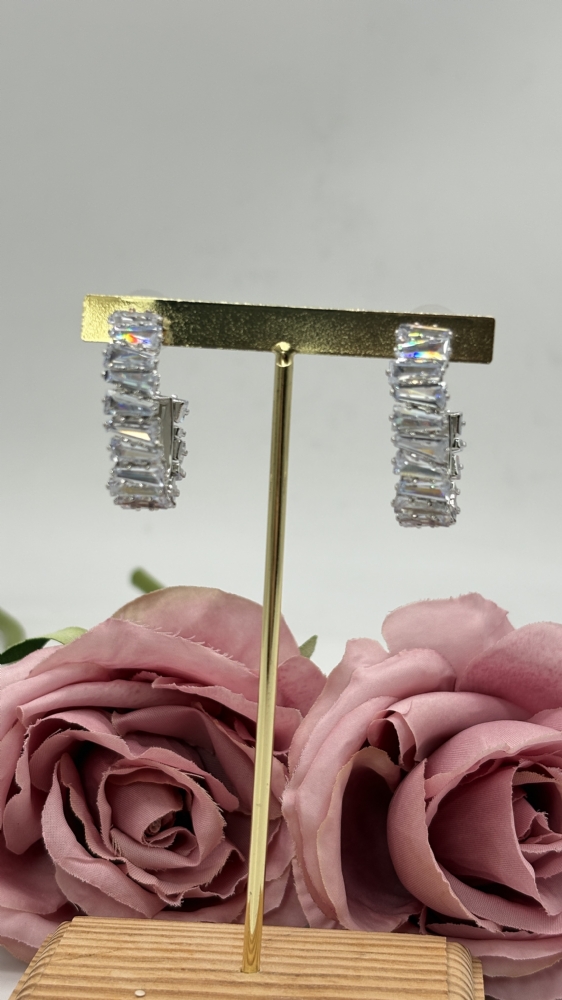 Σκουλαρίκια ατσάλινα χειροποίητα με στρας RHS0082 Ασημί