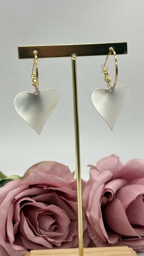 Σκουλαρίκια ατσάλινα χειροποίητα καρδούλες RHS0098 Ασημί